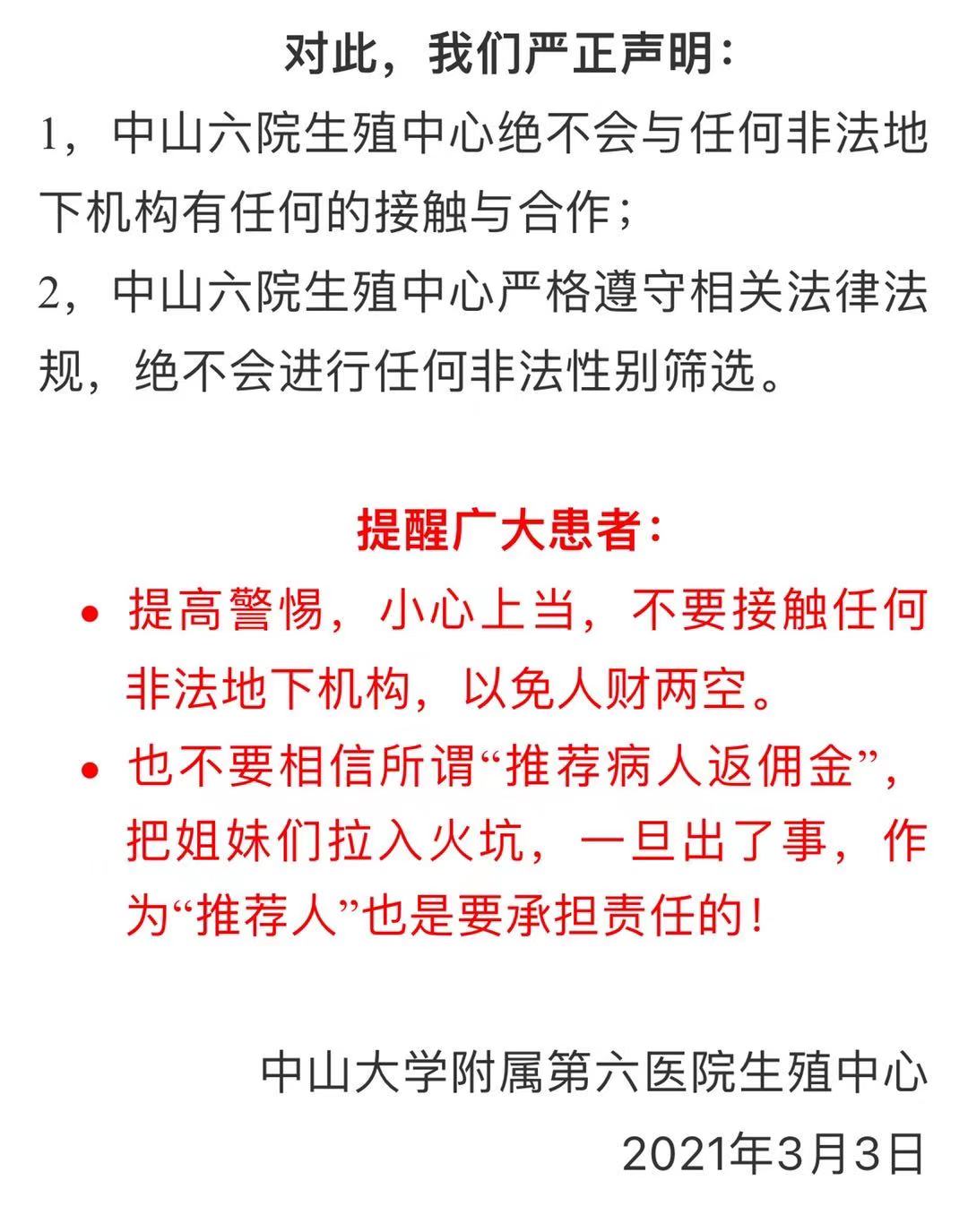 中山六院生殖中心严正声明