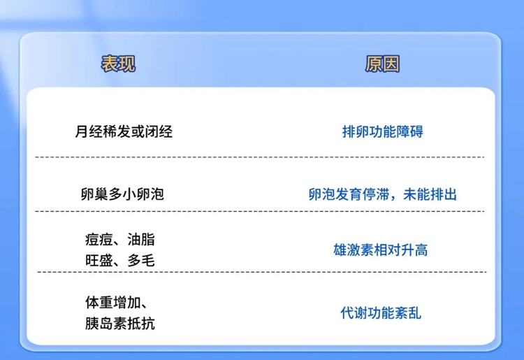 PCOS是一种常见的女性内分泌代谢疾病,发病率约为5%~10%,常见表现包括:
