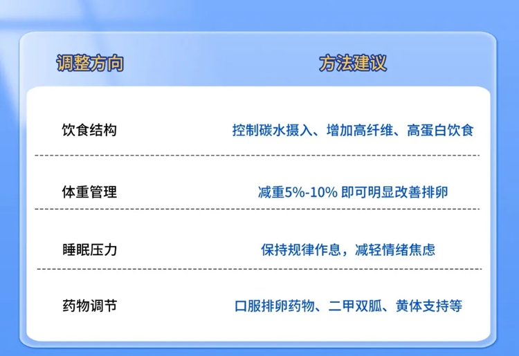 PCOS是一种可以管理、可逆改善的状态,通过以下方式可以极大改善排卵功能: